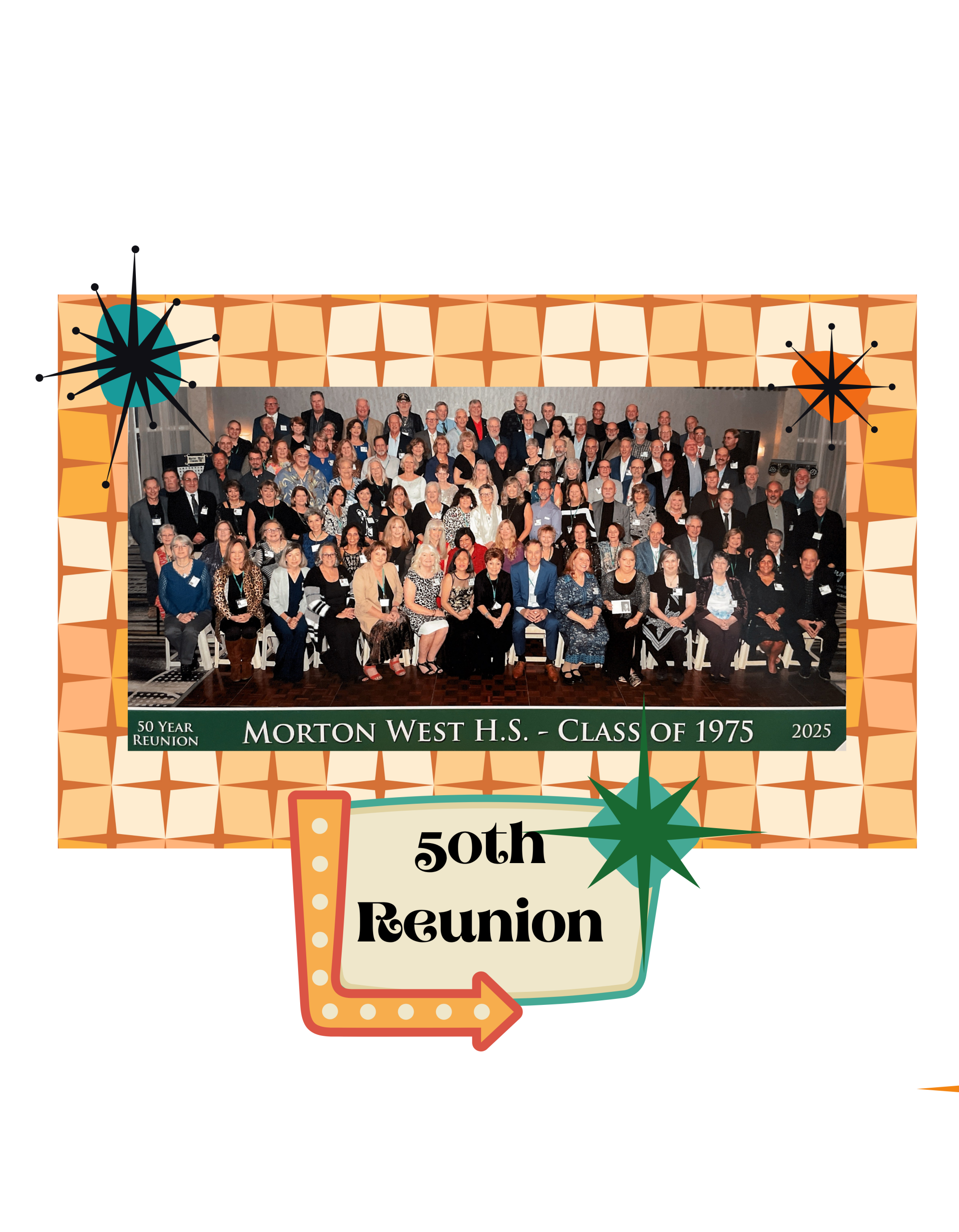The Morton West Alumni Volunteer Committee was dedicated to bring classmates together to celebrate 50 years since graduation on October 24th through 26th, 2025. Our team is passionate about creating unforgettable experiences and fostering lasting connections among attendees. Plans started in January of 2024 with team members joining over the next month. Weekly Zoom meetings occurred throughout the months, while those old school time bonds rekindled with us all.